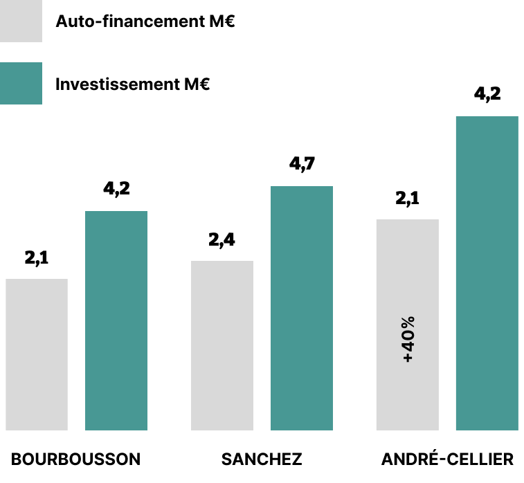 Sur les 10 dernières années des mandats André-Cellier, elle était de 3,5 millions € soit 40 % de plus, si on compare en euro constant (en tenant compte de l’inflation), la différence est de 82 %.